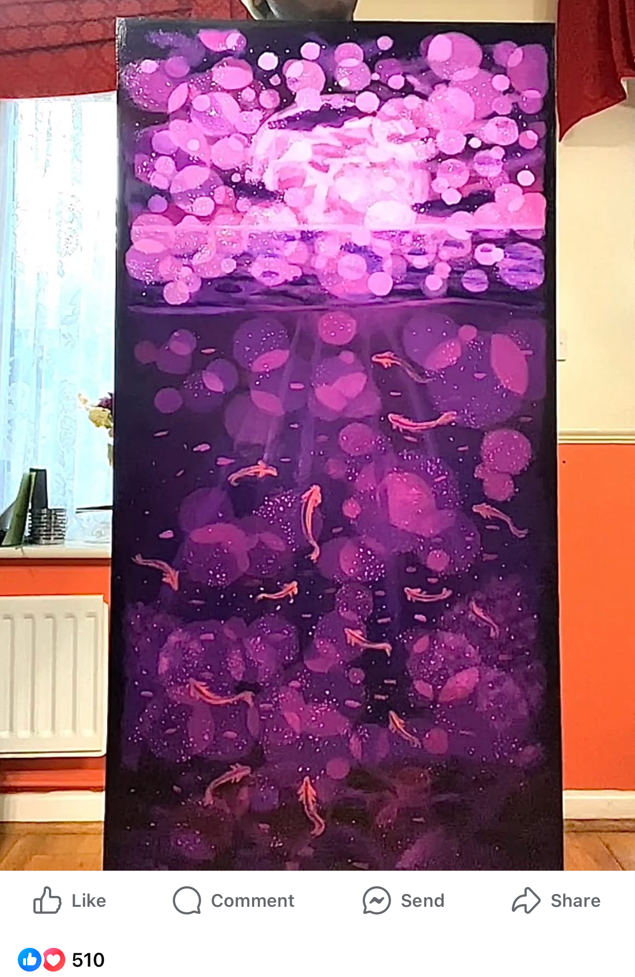 My style blends bold, textured brushwork with luminous particle effects inspired by Yayoi Kusama and Hayao Miyazaki. By layering surrealist symbolism onto anime-inspired figures, I forge a new visual language that resonates equally with dedicated collectors and passionate fans.