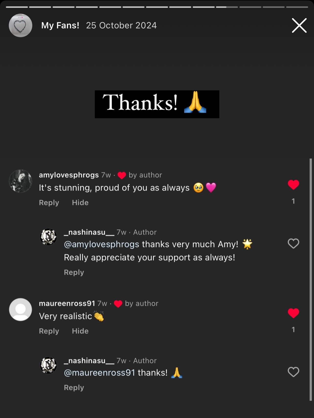 My artworks has liked by numerous celebrities including French Actress Loan Chabanol and English Tattoo Artist Alice Perrin from Tattoo Fixers.